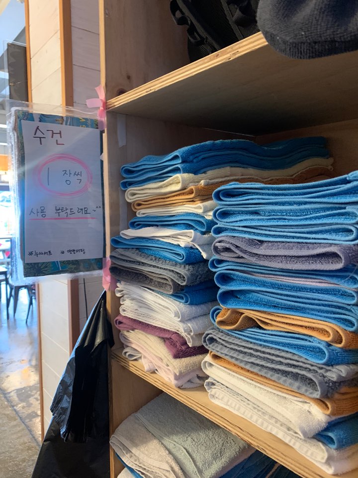 이곳에서 제공해주는 수건을 사용하며 편리하죠 :)